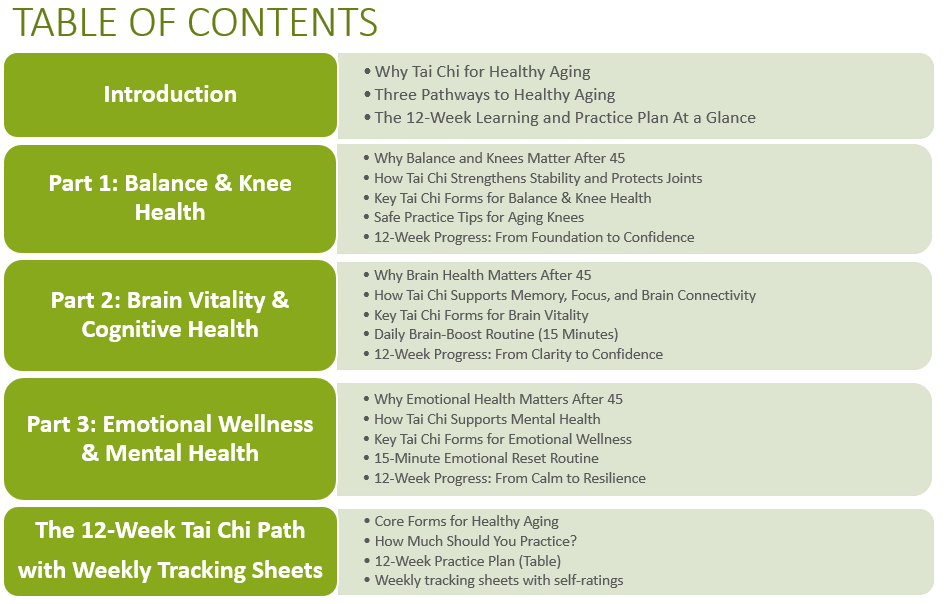 September is Healthy Aging Month — follow our free Healthy Aging in 12 Weeks with Tai Chi Guide here and finish right before the holiday season — with stronger balance, sharper focus, and calmer mind!